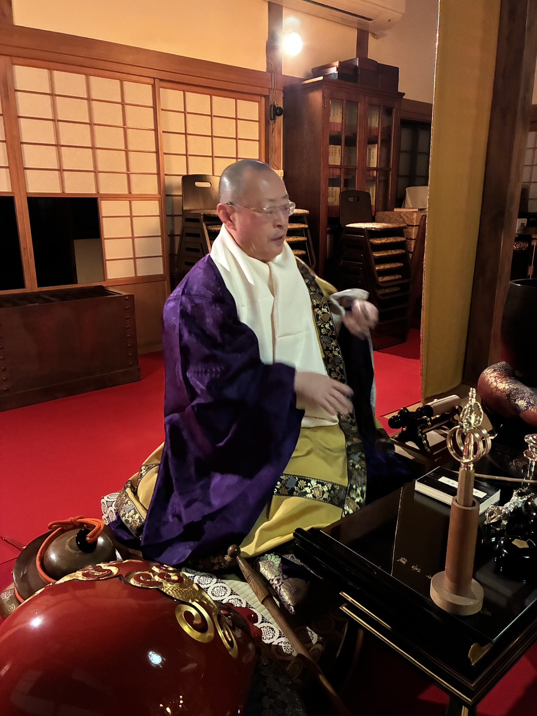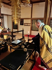 修正会( しゅしょうえ ) について 修正会は正月に厳修する法要です。新年を迎えるにあたり、正福院ご本尊大日如来さまと、各家お檀家さまのご先祖さまに改めて供養を捧げ、年頭のご挨拶を修します。また、平和な世の中で私たちが安心して暮らせるように、今年一年のご加護を祈るとともに、皆さまの息災安穏を祈り、お一人お一人に授けるお守り(紙札)をお加持します。 修正会の様子