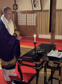 修正会( しゅしょうえ ) について 修正会は正月に厳修する法要です。新年を迎えるにあたり、正福院ご本尊大日如来さまと、各家お檀家さまのご先祖さまに改めて供養を捧げ、年頭のご挨拶を修します。また、平和な世の中で私たちが安心して暮らせるように、今年一年のご加護を祈るとともに、皆さまの息災安穏を祈り、お一人お一人に授けるお守り(紙札)をお加持します。 修正会の様子